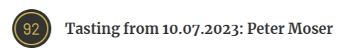 Medium greenish yellow, silver reflections. Fine nuances of orange zest, hints of yellow peach and mango, mineral backed blossom honey. Medium complexity, white apple, fine acidity, fresh finish, lemony aftertaste.